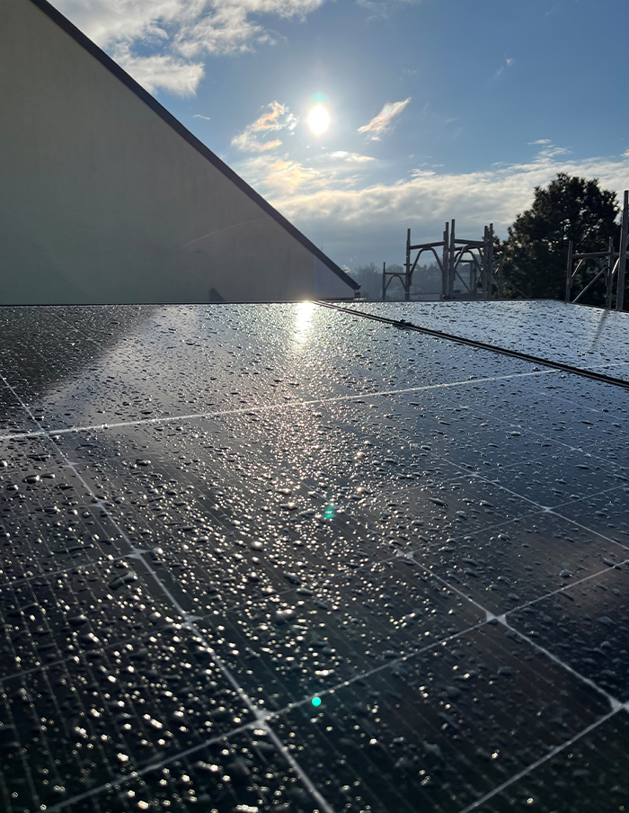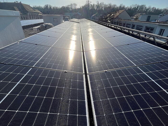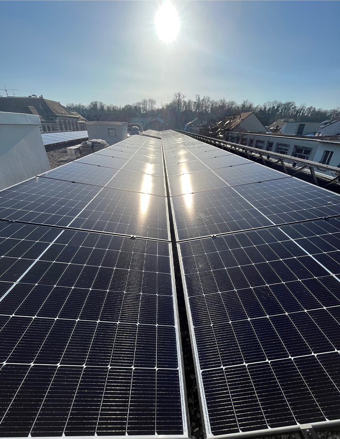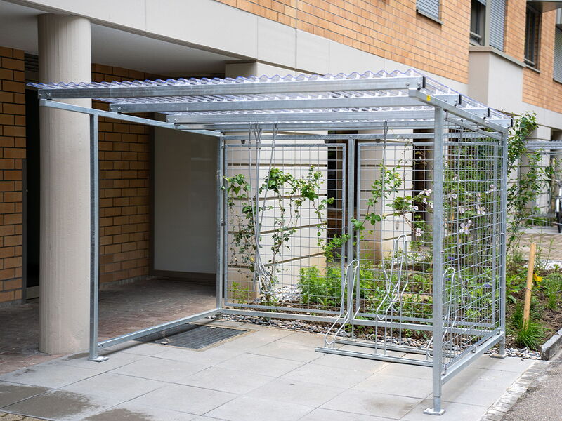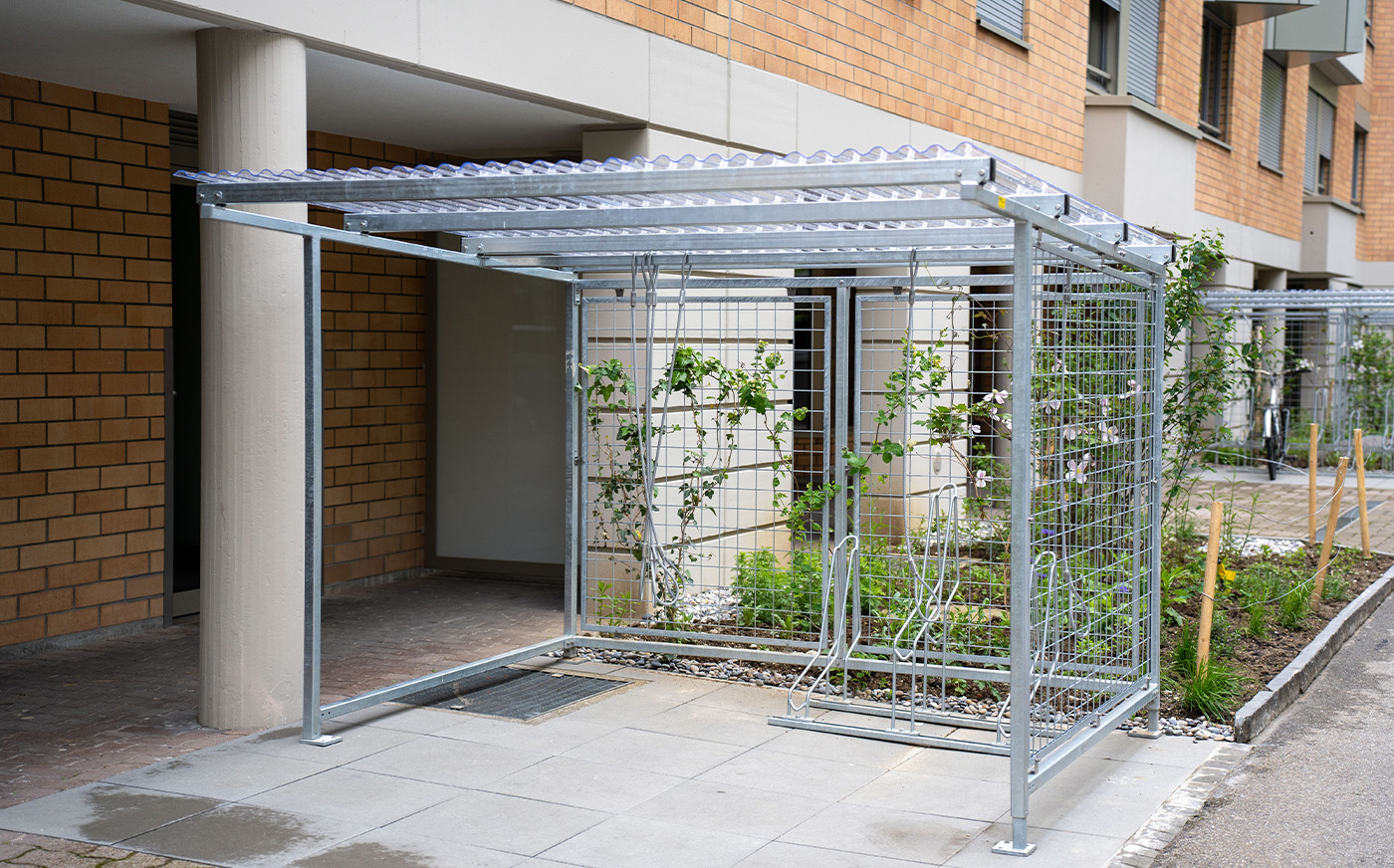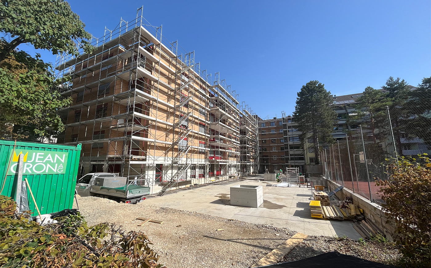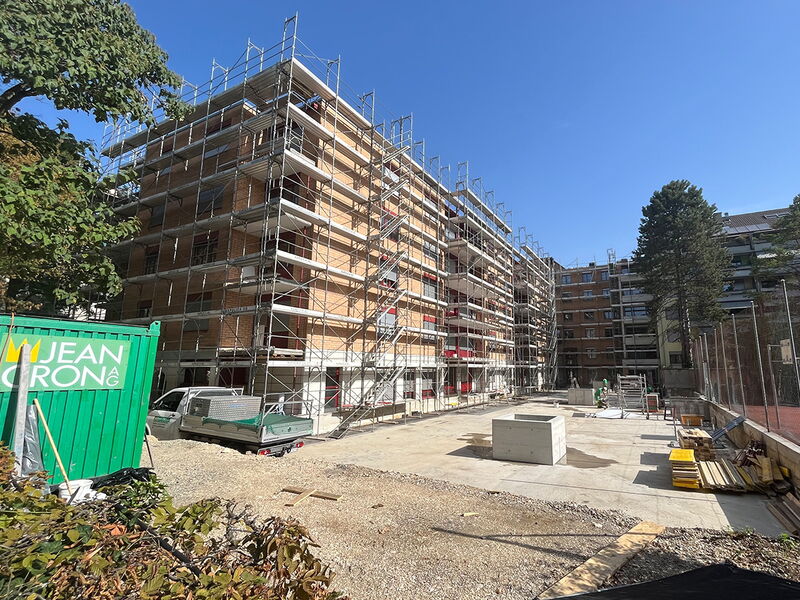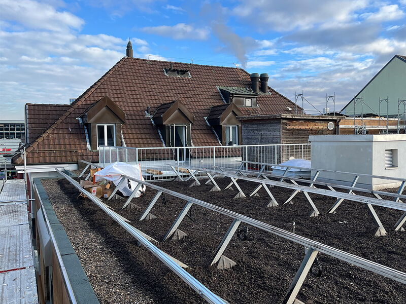 Zusammen mit der Sanierung (statische Ertüchtigung der Autoeinstellhalle wurde auch die Gebäudehülle saniert. Die bestehenden Balkone wurden umgestaltet, die Fenster und Rolläden ersetzt sowie die Flachdächer der beiden Gebäude saniert und zusätzlich eine Photovoltaikanlage auf den Dächern gebaut. Die grosse Herausforderung bei der Neugestaltung der Fassade war, den Charakter des 160 jährigen Eckgebäudes beizubehalten.