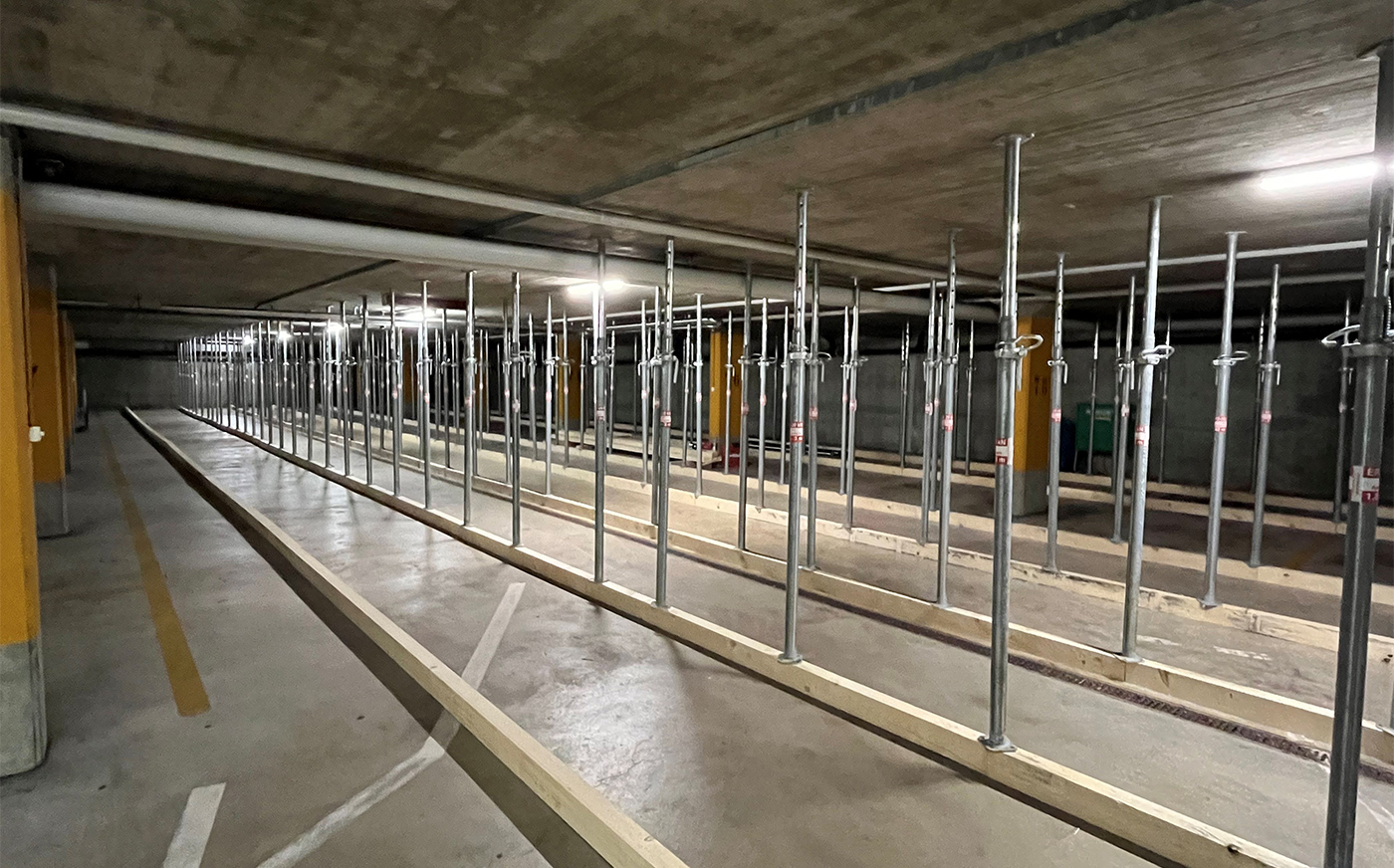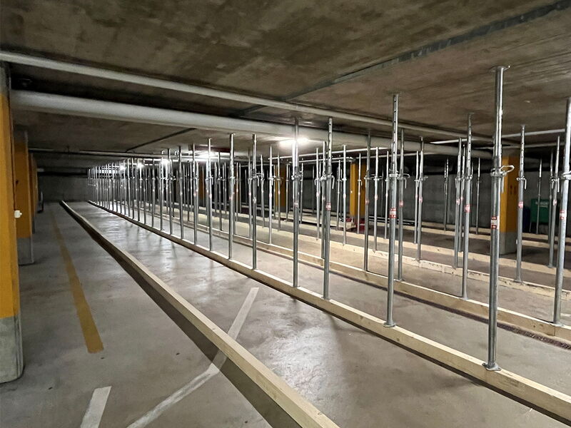 Sanierung Einstellhalle, Fassade, Flachdach, Balkon und Fenster